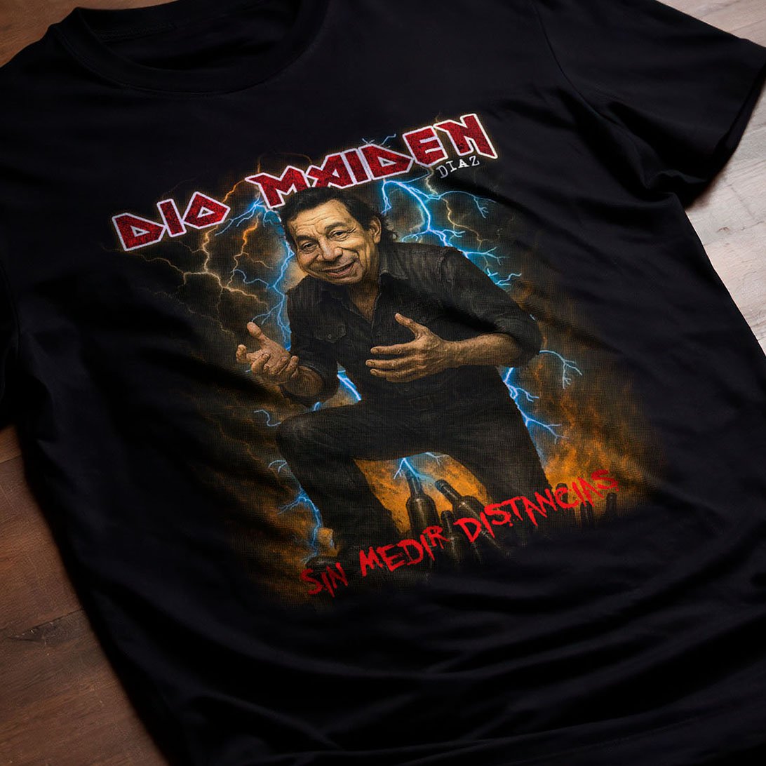 Camiseta Dio Maiden, Sin medir distancias, inspirada en el logotipo de Iron Maiden